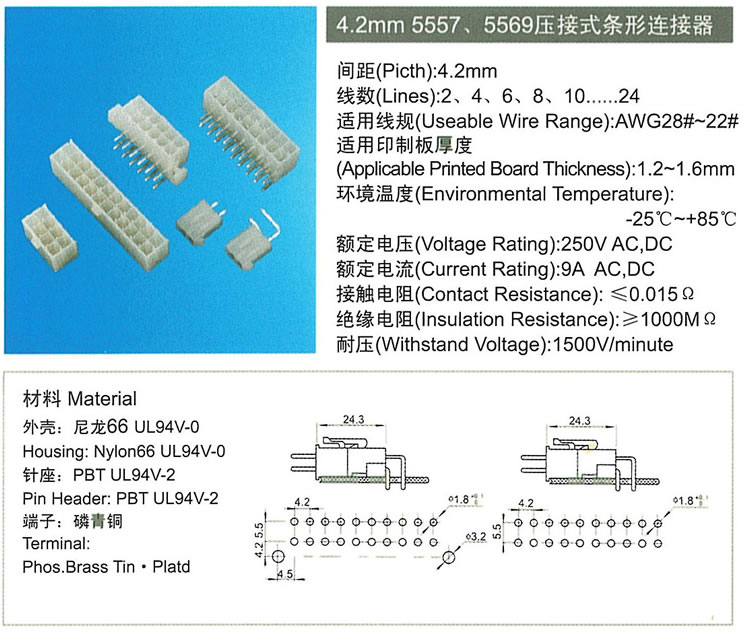 4.2mm5557、5569压接式条形连接器