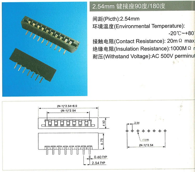 2.54mm 键接座90度/180度